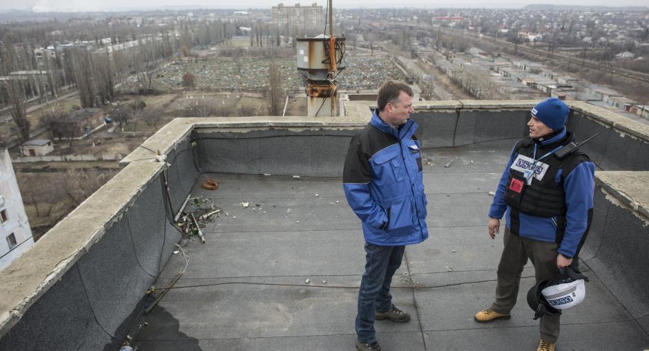 Хуг впоследствии посетил руины аэропорта, чтобы осмотреть два места, которые могут служить в качестве наблюдательного пункта, а также для установления камер для СММ. Две камеры, одна – на подконтрольной «ДНР» шахте «Октябрьский рудник», вторая – в контролируемой правительством Авдеевке, позволят Миссии круглосуточно наблюдать за территорией вокруг Донецкого аэропорта - одного из самых напряженных мест в Восточной Украине - в радиусе 360 градусов, что значительно повысит возможности Миссии по мониторингу.