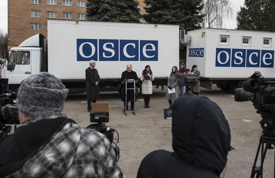 Посол Швейцарии в Украине Гийом Шойрер передал Главе Специальной мониторинговой миссии ОБСЕ в Украине (СММ) Эртурулю Апакану два жилых модуля для наблюдателей, работающих на востоке.