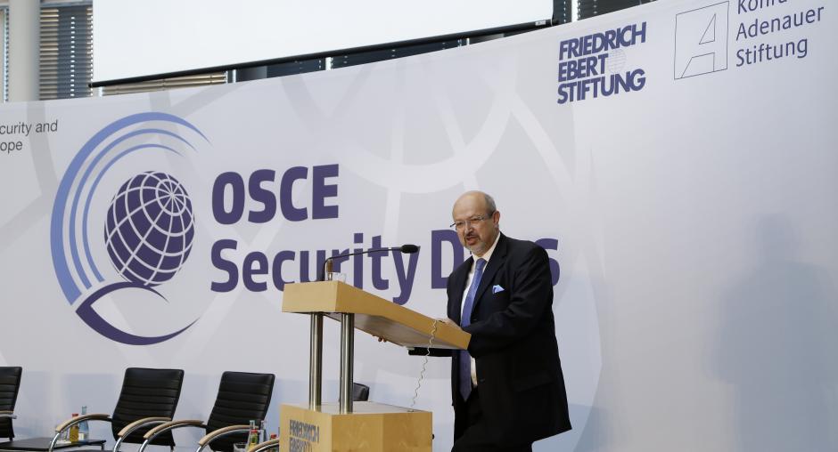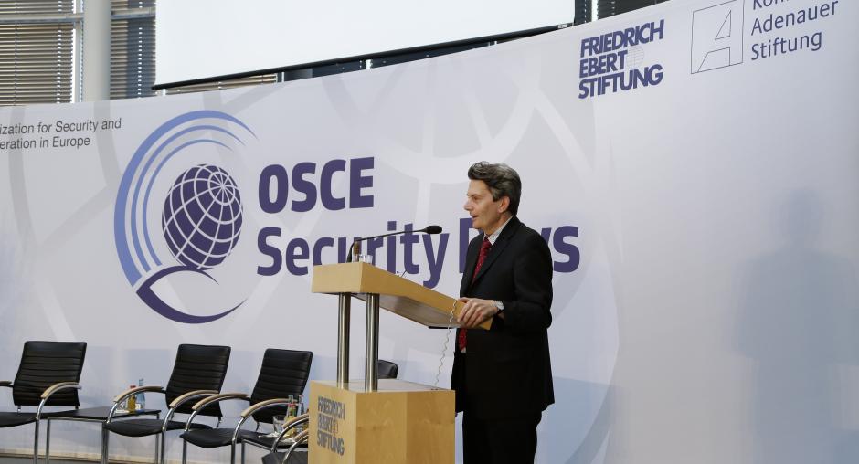 The main conference held in the premises of the Friedrich-Ebert-Stiftung was structured into four sessions that focused on restoring stability and predictability in the politico-military sphere, ways to bridge economic integration processes, joint responses to global and transnational threats, and perspectives for returning to co-operative security in the OSCE area. The event generated a number of ideas and recommendations for rebuilding trust and confidence among the OSCE participating States and improving the prospects for joint action in the face of growing common security threats and challenges. The lively and interactive discussion underlined that European security faces a number of challenges that are too great for any one country or organization to tackle alone. It also showed that while there were different perceptions and divergent interpretations of the origins of the current impasse, there was also a growing realization that the current challenges to European security required all participating States to seek a convergence of interests wherever possible. The event was made possible thanks to the generous support of the Friedrich-Ebert-Stiftung, the Konrad-Adenauer-Stiftung, and the German OSCE Chairmanship.