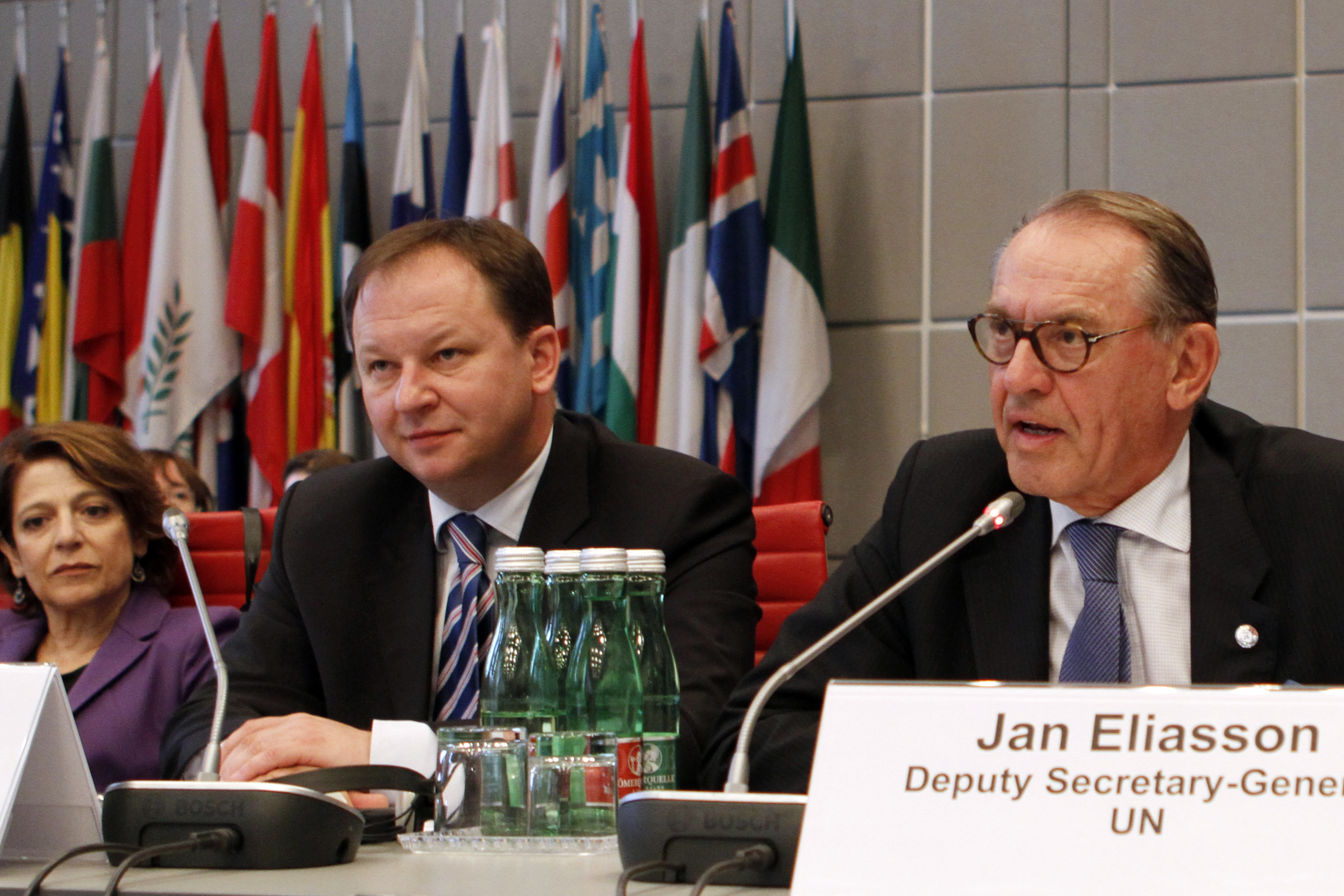 OSCE Special Representative and Co-ordinator for Combating Trafficking in Human Beings, Maria Grazia Giammarinaro, Ambassador Ihor Prokopchuk, Chairperson of the OSCE Permanent Council and Jan Eliasson, UN Deputy Secretary-General at the opening session of the Alliance against Trafficking in Persons conference, Vienna, 25 June 2013.