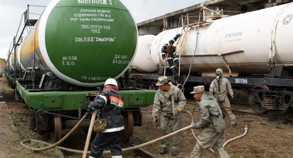 SARY OZEK, KAZAKHSTAN, 29 June 2013 - A train carrying 410 tonnes of a toxic rocket fuel component, which had been stored in deteriorating containers, left Kazakhstan today for safe disposal at a specialized chemical plant in Dzerzhinsk, Russia as part of a project supported by the OSCE.