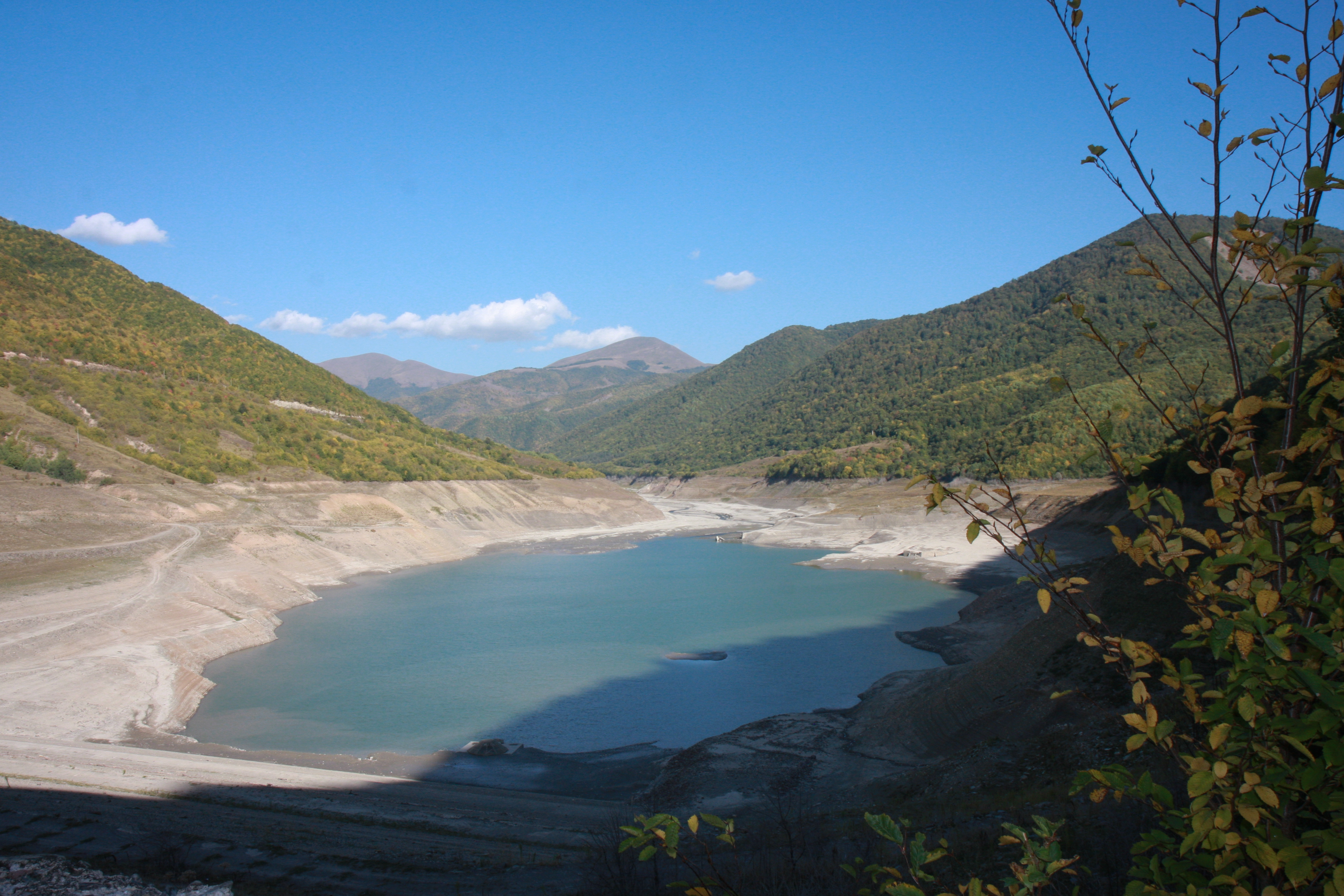 This is the view from the crest of the dam. It is located in mountainous areas, where long and cold winters make rehabilitation work difficult.