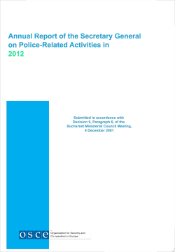 The Annual Report of the Secretary General on Police-Related Activities in 2012, submitted in accordance with Decision 9, paragraph 6, of the 2001 Bucharest Ministerial Council Meeting, provides an overview of the police-related programmes and projects, implemented by the OSCE executive structures, including the thematic units in the Secretariat, the Institutions and the field operations, during 2012.