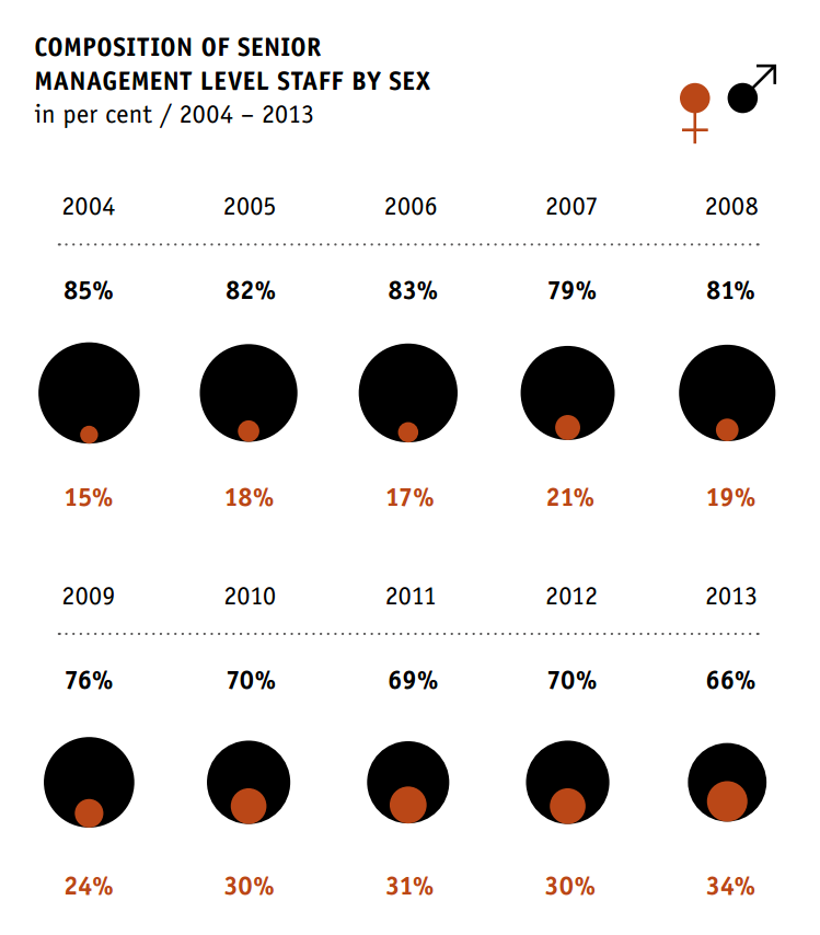 Composition of senior management positions by sex. Graphic from OSCE Annual Report 2013 (http://www.osce.org/secretariat/116947).