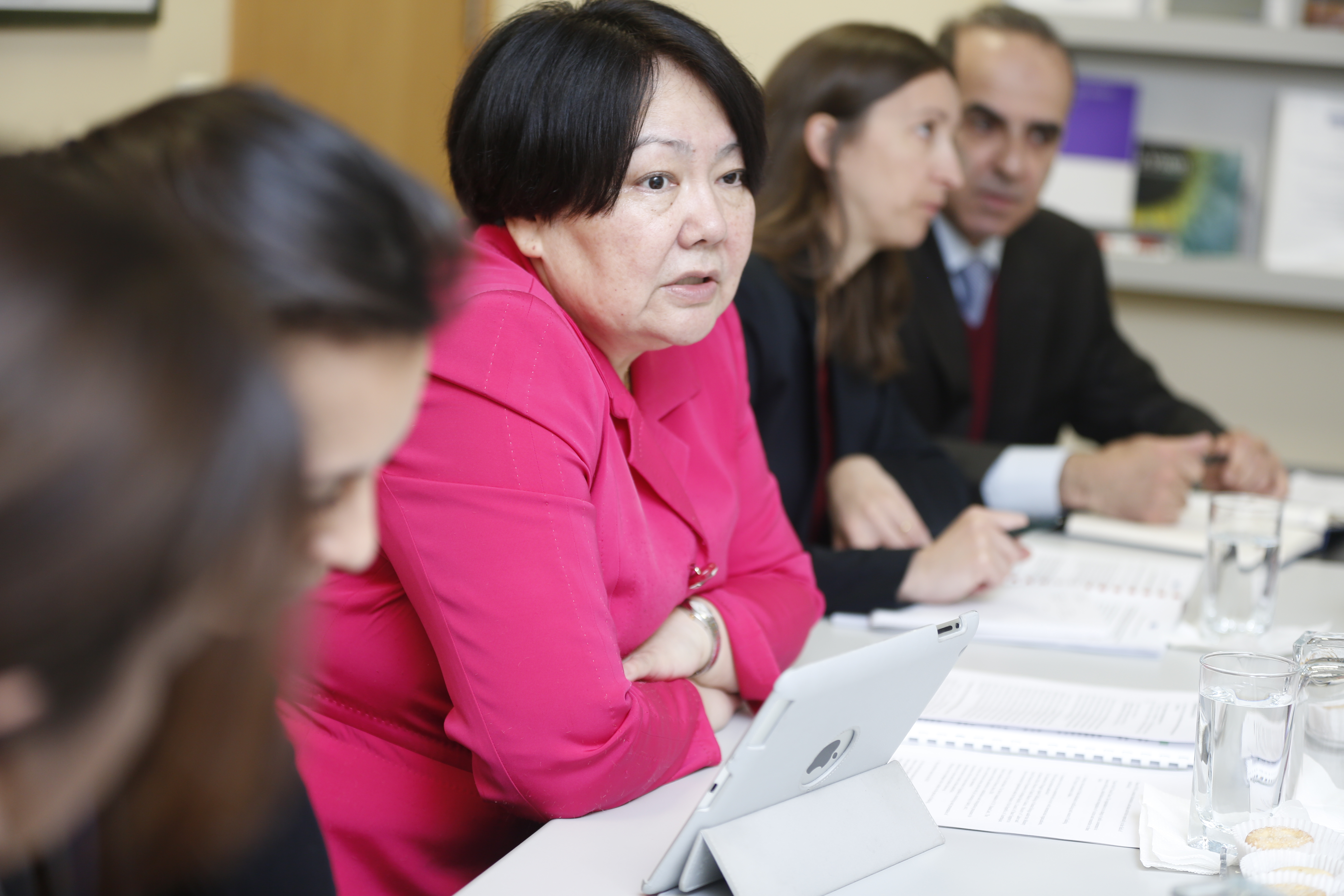 The OSCE Special Representative and Co-ordinator for Combating Trafficking in Human Beings Ambassador Madina Jarbussynova during a four-day visit to Azerbaijan to assess its implementation of anti-trafficking recommendations made in an official report, Baku, 12 March 2015.