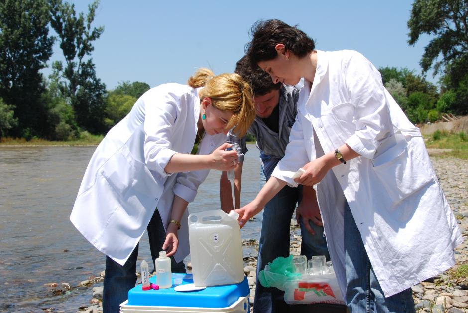 The team of the ENVSEC South Caucasus River Monitoring Project takes samples of water and soil at the border between Azerbaijan and Georgia, May 2008.