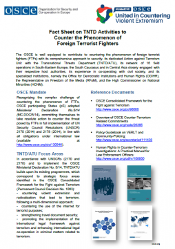 This factsheet outlines how the OSCE Transnational Threats Department contributes to tackling the phenomenon of foreign terrorist fighters by building on its existing programmes and in line with the OSCE Consolidated Framework for the Fight against Terrorism.