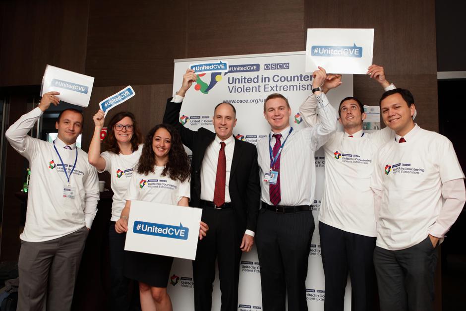 Tom Wuchte, former Head on Anti-Terrorism Issues, and OSCE Youth Ambassadors - together, across countries and generations, against violent extremism, Warsaw, 25 September 2015.