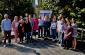 Vera Djemelinskaia, OSCE #UnitedCVE campaign, and participants of the "#YouthTrail: Promoting OSCE values in the Western Balkans", upon finishing an interactive session on designing communication campaigns aimed at preventing violent extremism, Tirana, 19 September 2017. (OSCE/Lucia Carmona)