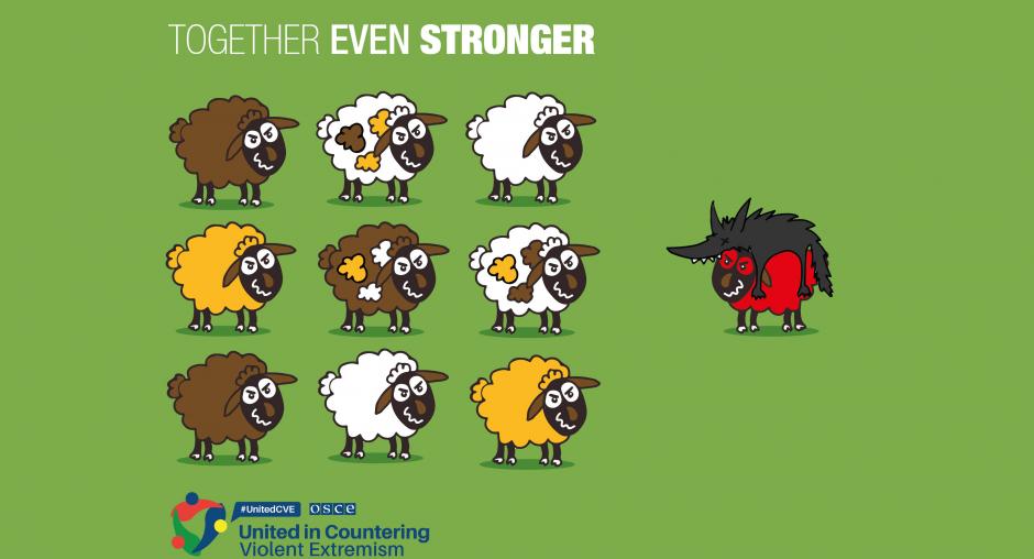 The OSCE launched the #LetsDoodle contest in partnership with eYeka, a global community of talented creators, asking artists to create a cartoon character challenging violent extremism with creativity, imagination and humour. A total of 29 creative concepts from 16 OSCE participating States and Partners for Co-operation were received in support of the OSCE United in Countering Violent Extremism (#UnitedCVE) communications campaign. Jalal Bouanani from France won the first prize with his ‘Together even Stronger’ concept.
