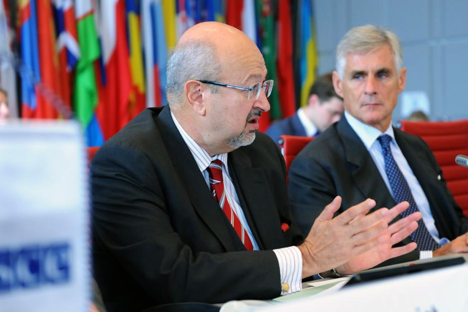 (l-r) OSCE Secretary General Lamberto Zannier and Secretary General of the Austrian Federal Ministry for Europe, Integration and Foreign Affairs Michael Linhart at the OSCE Mediterranean Conference in Vienna, 5 October 2016.