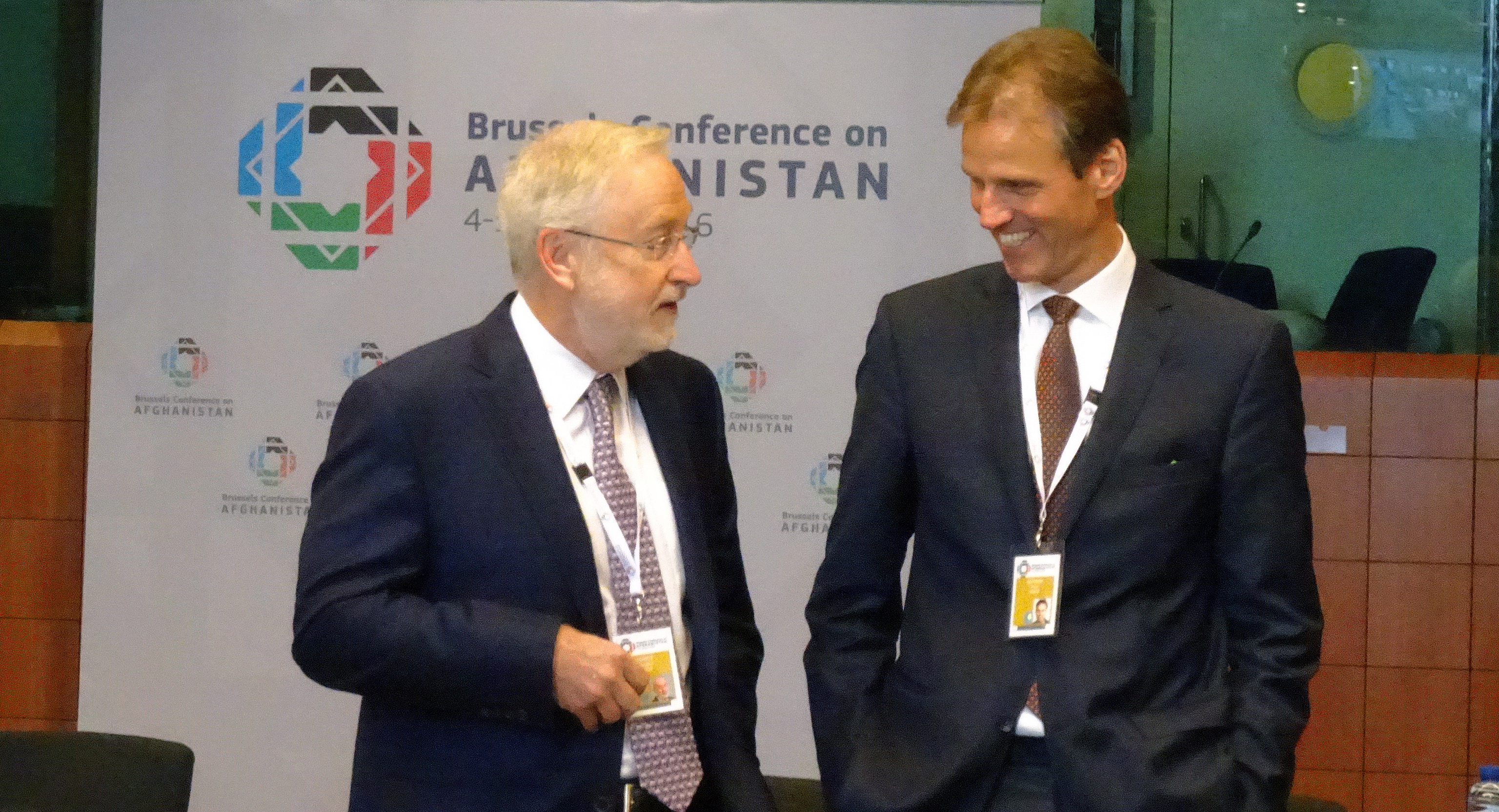(r) Paul Bekkers, Director of the Office of the OSCE Secretary General and (l) Douglas Frantz, Deputy Secretary-General of the Organization for Economic Cooperation and Development at the Brussels Conference on Afghanistan, 4-5 October 2016.