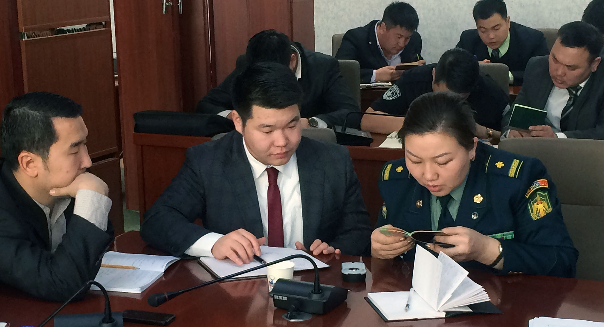 Mongolian law enforcement officials check the authenticity of passports during a training course organized by the OSCE Transnational Threats Department, Ulaanbaatar, 2016.