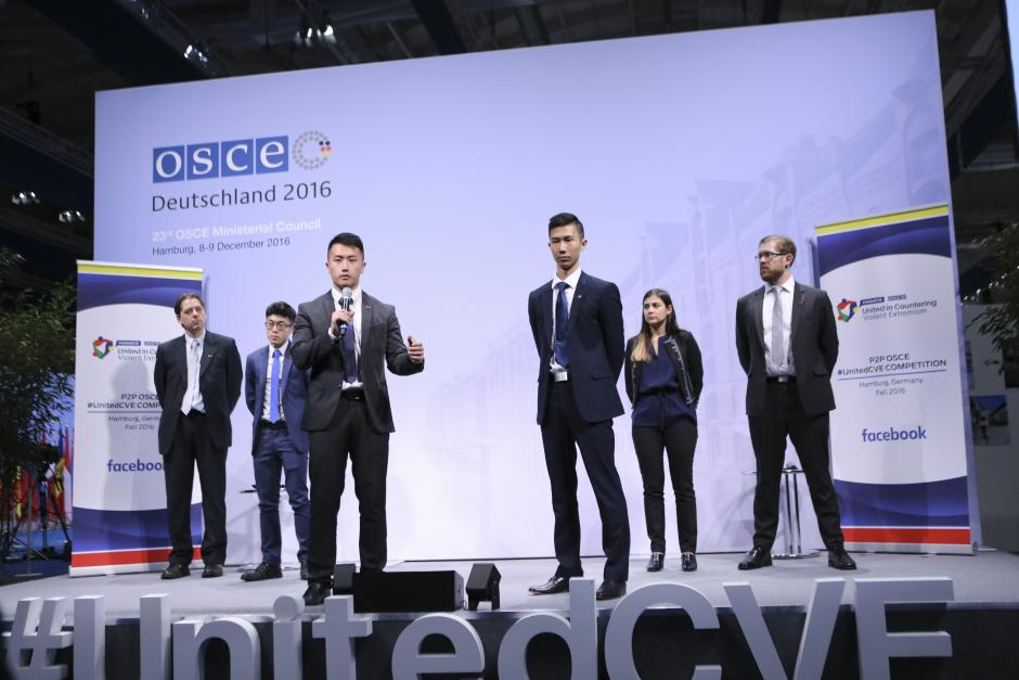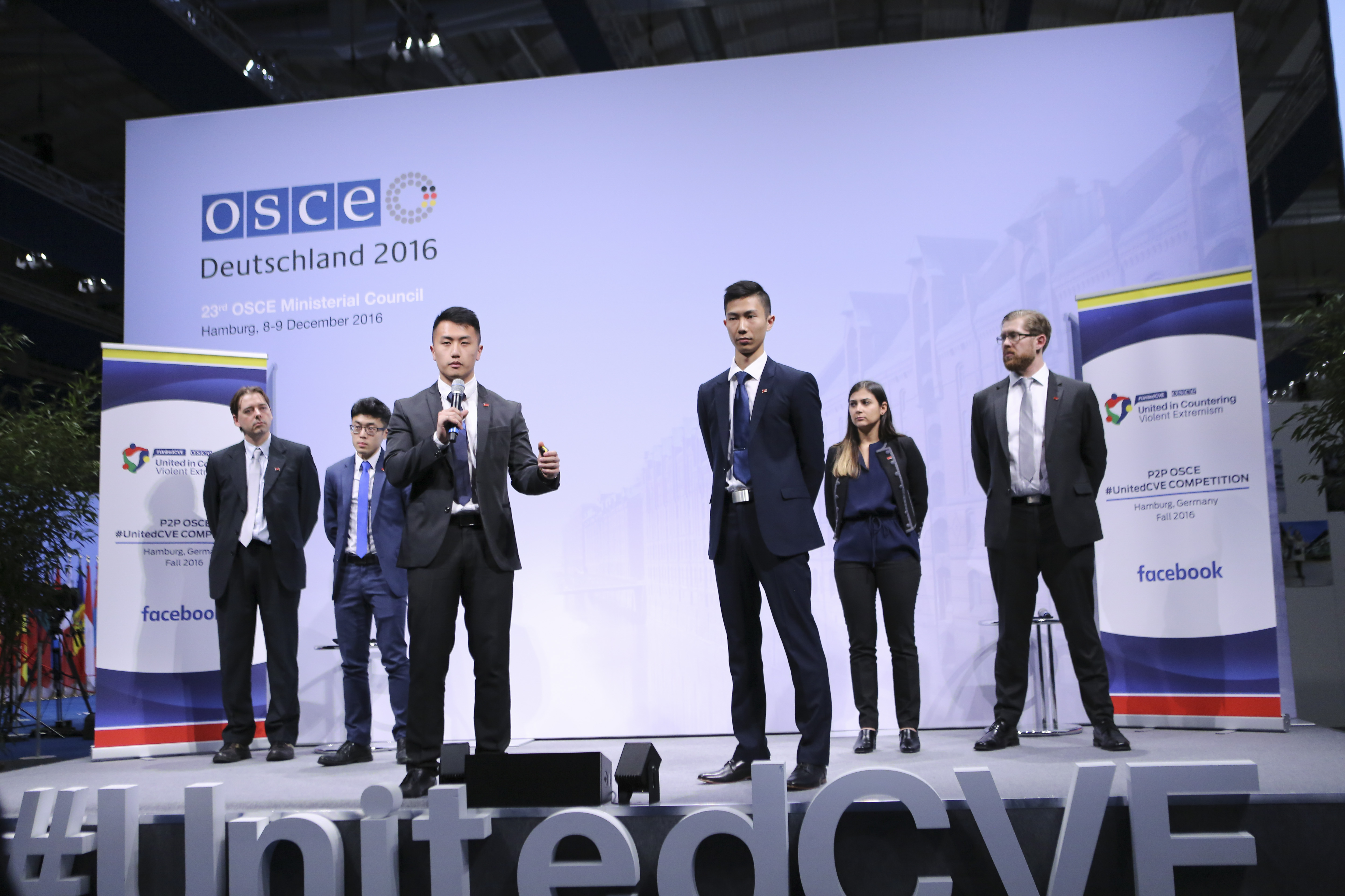 Team from the Simon Fraser University, Canada, presenting their campaign "Voices Against Extremism" at the #UnitedCVE regional contest: “Peer-2-Peer: Challenging Extremism", Hamburg, 8 December 2016.