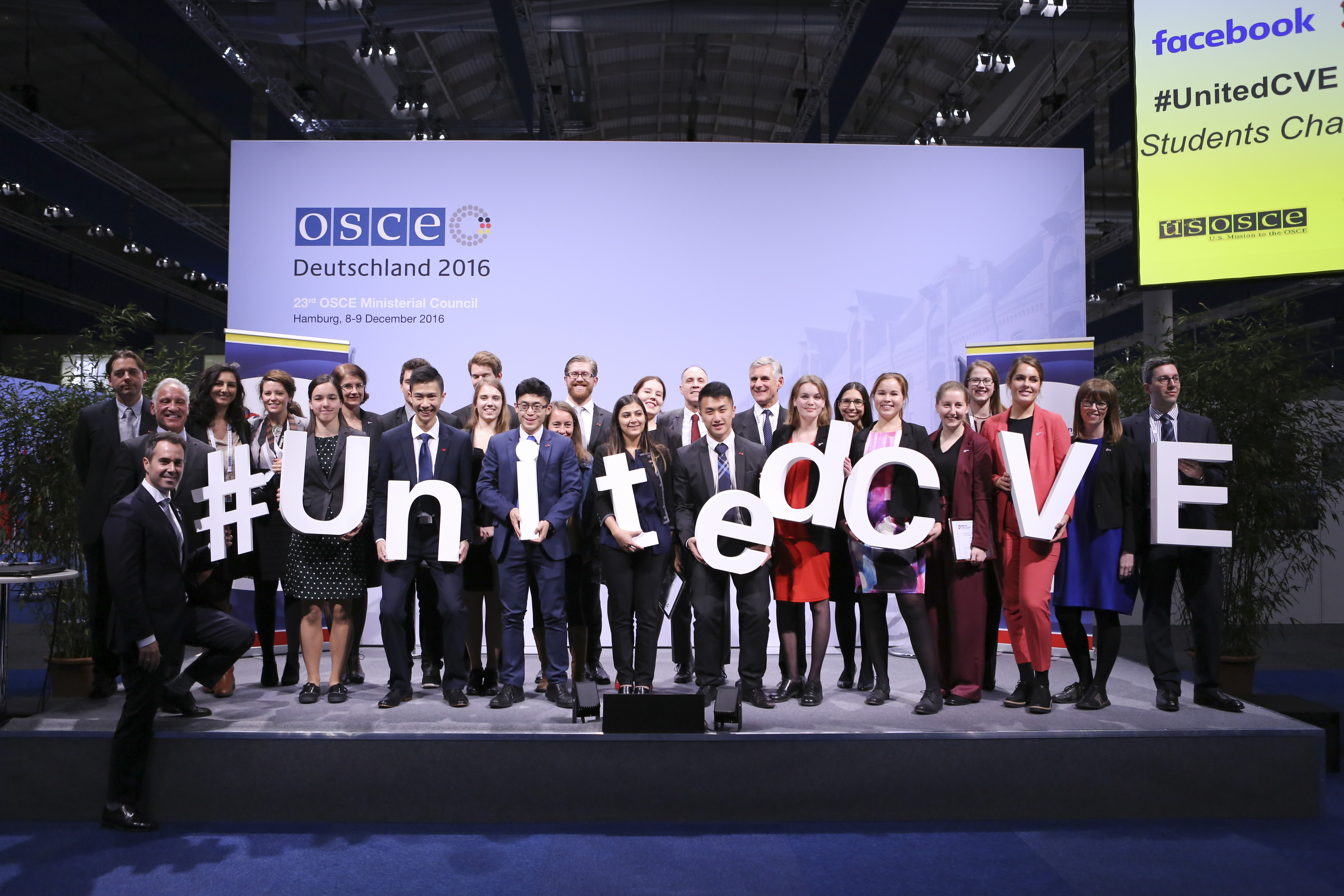 The finalist teams together with the jury members and the organizers, #UnitedCVE regional contest: “Peer-2-Peer: Challenging Extremism", Hamburg, 8 December 2016.