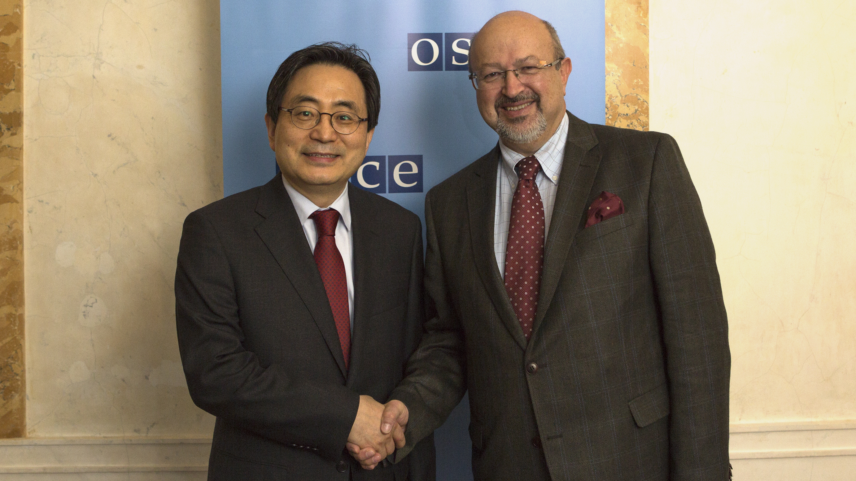 H.E. SHIN Dong-ik (l), Ambassador of the Republic of Korea, with OSCE Secretary General Lamberto Zannier, Vienna, 05 January 2017.
