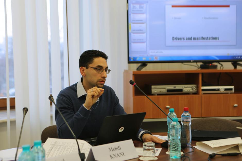 Mehdi Knani, Programme Officer on Preventing and Countering VERLT, OSCE Transnational Threats Department, facilitating the drafting process of the policy recommendations on preventing and countering violent extremism in the Black Sea Region, Chisinau, 3 February 2017.
