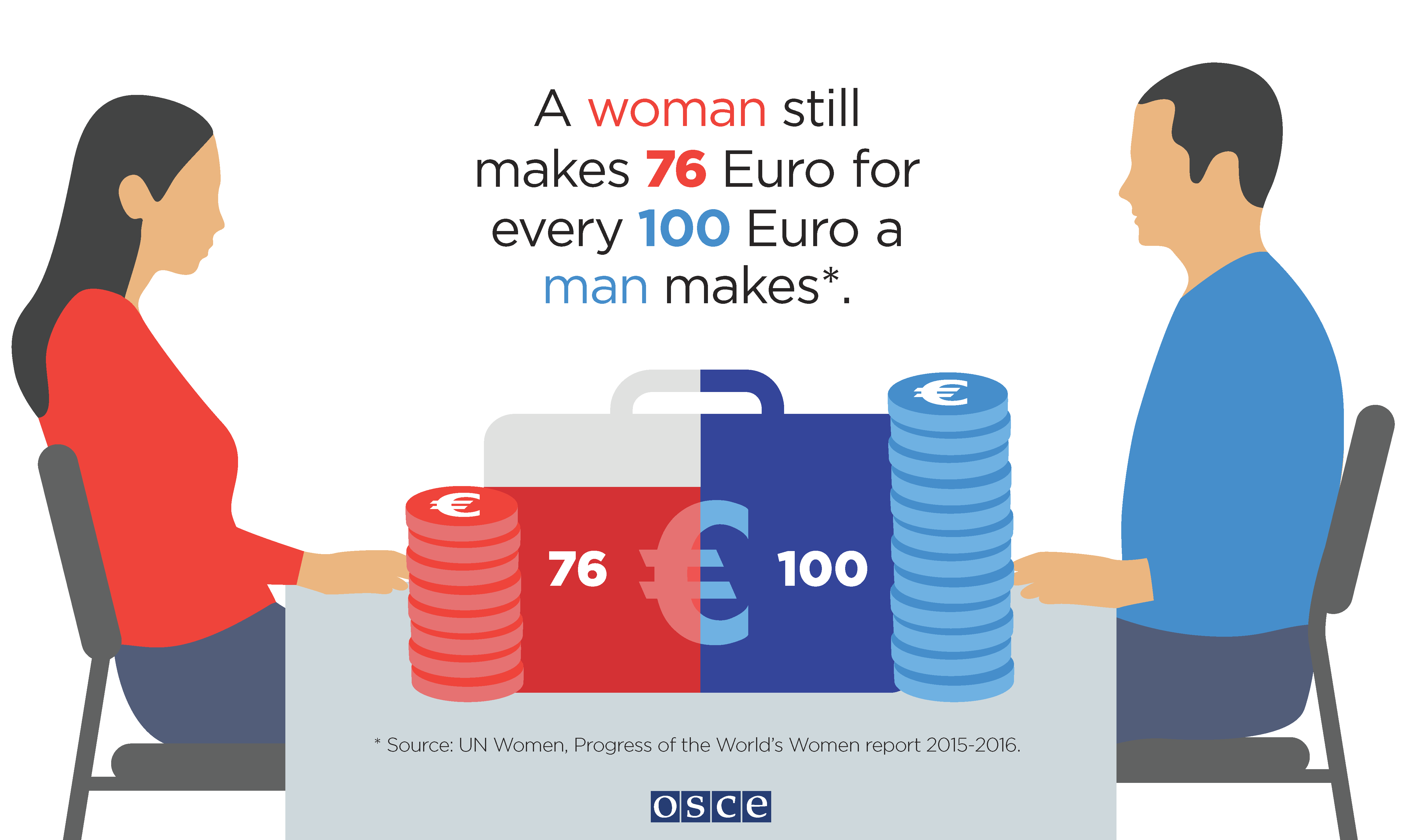 A woman still makes 76 Euro for every 100 Euro a man makes.