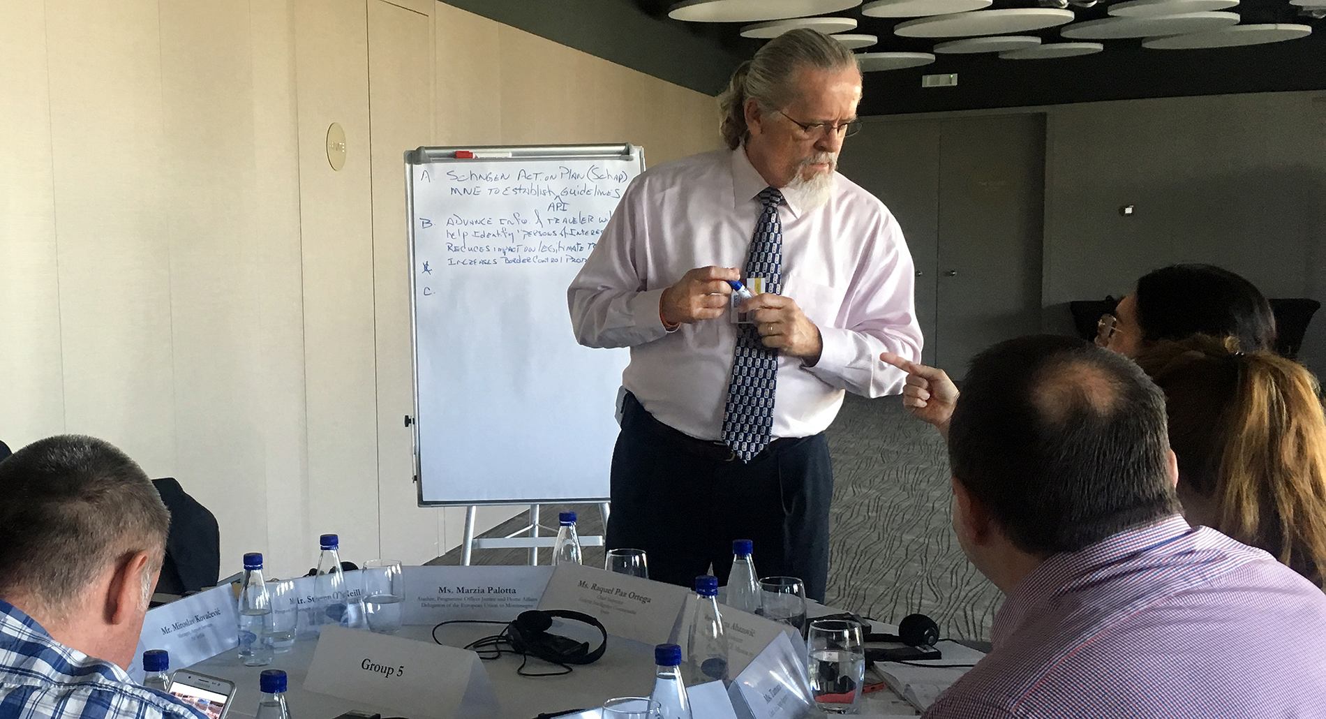 Participants during a brainstorming session regarding the best way to implement an Advance Passenger Information (API) system in Montenegro, 31 May 2017.