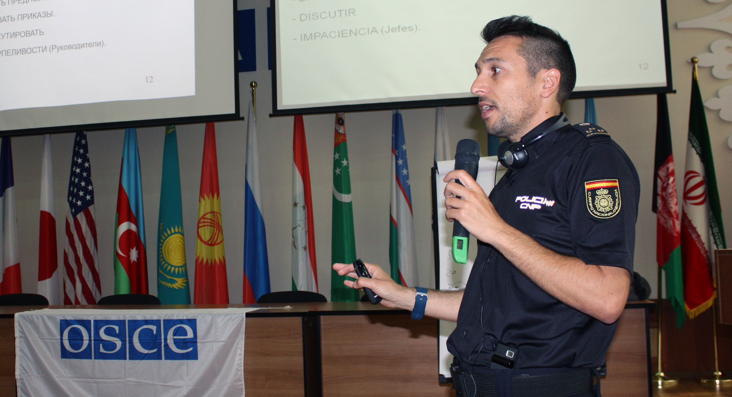 Spanish National Police experts delivering a training at OSCE-UNODC workshop, Almaty, 7 June 2017.