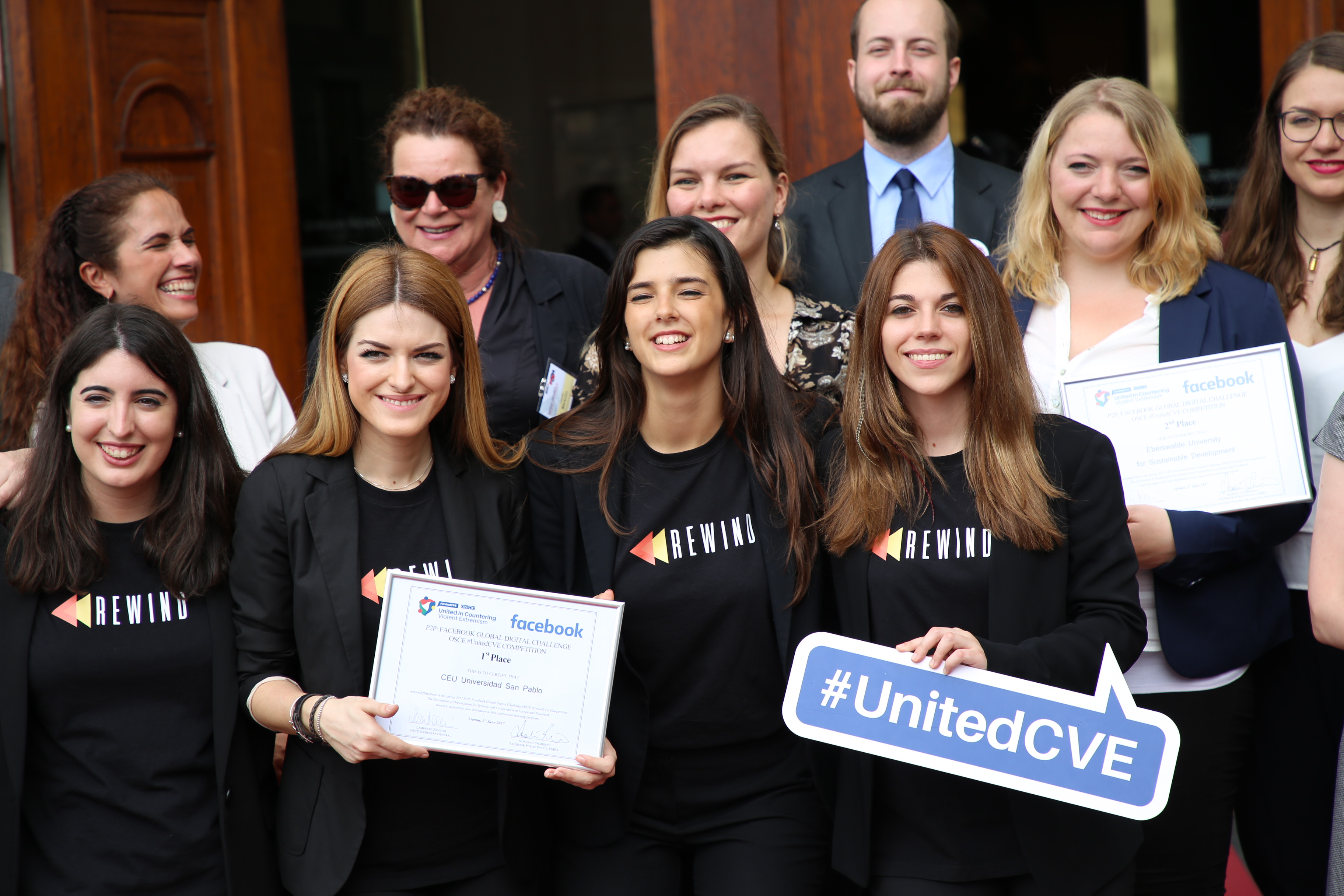 Finalists of the 2d regional competition organized by the OSCE United in Countering Violent Extremism (#UnitedCVE) campaign as part of the Peer to Peer (P2P): Facebook Global Digital Challenge, Vienna, 27 June 2017.