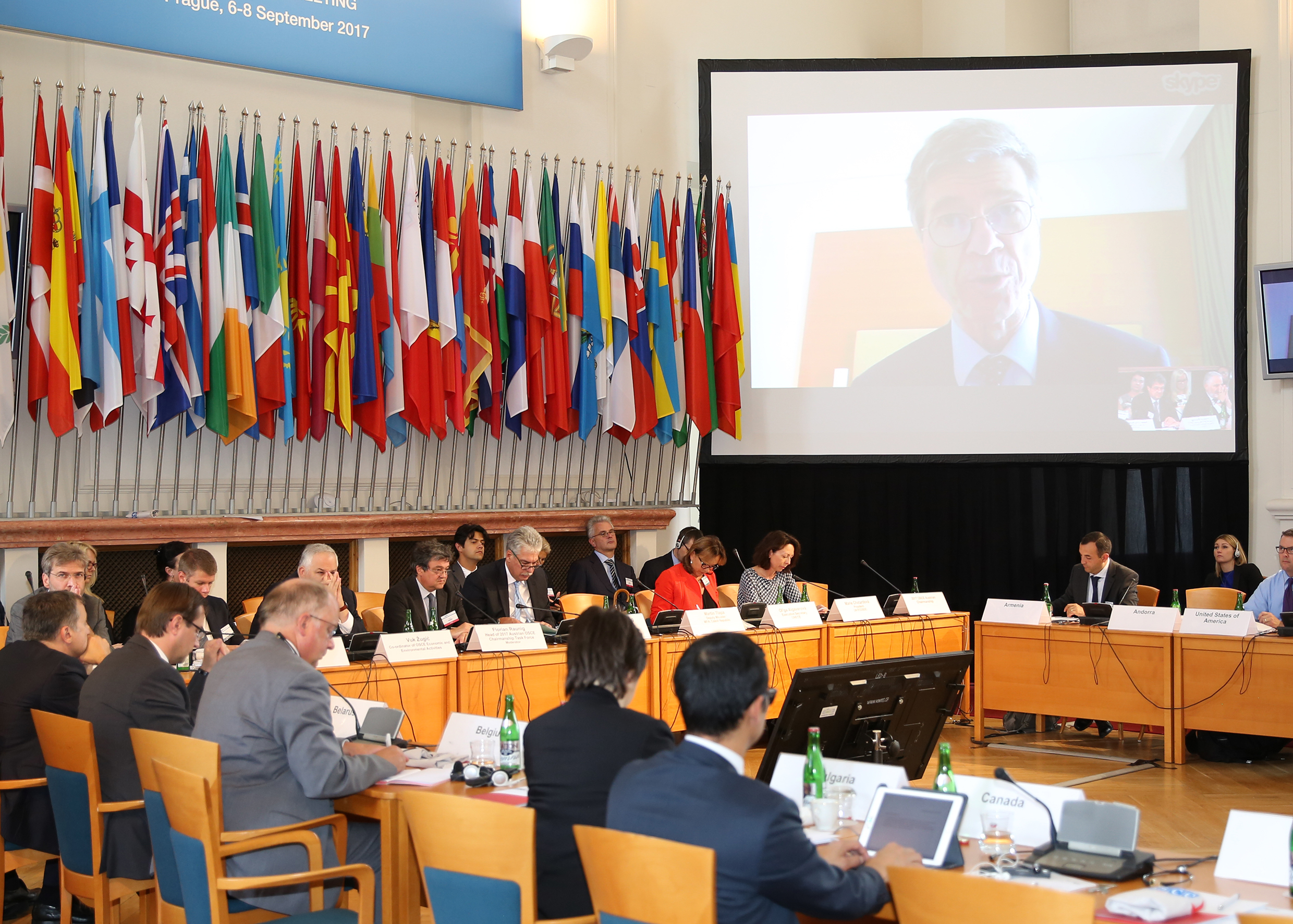 Prof. Jeffrey D. Sachs, Special Adviser to the United Nations Secretary General António Guterres, on the Sustainable Development Goals delivering a keynote speech via video conference at the Concluding Meeting of the 25th OSCE Economic and Environmental Forum, Prague, 6 September 2017.