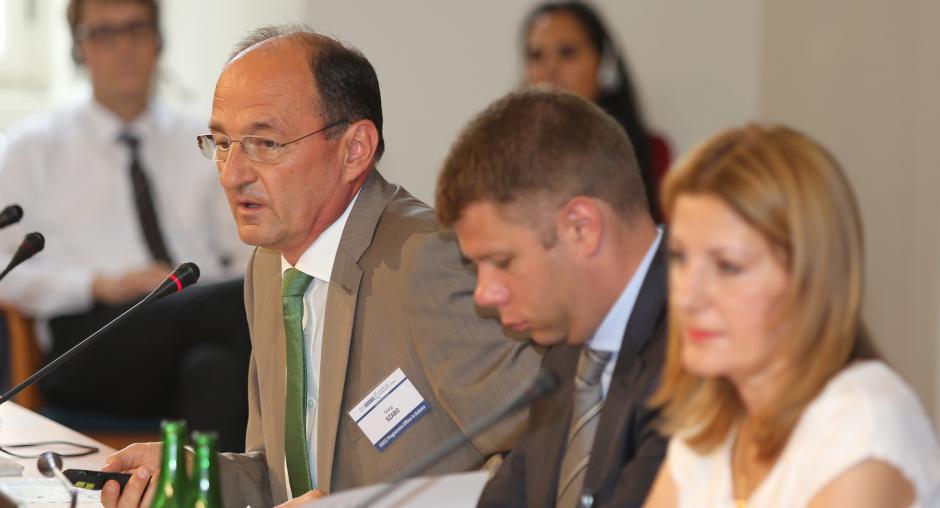 Ambassador György Szabo (l), Head of the OSCE Programme Office in Astana speaks at the Concluding Meeting of the 25th OSCE Economic and Environmental Forum, Prague, 7 September 2017.