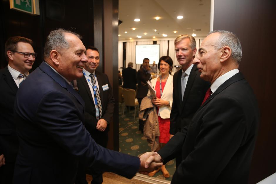 Dragan Mektić (l), Minister of Security of Bosnia and Herzegovina, and Guy Vinet, Head of OSCE Strategic Police Matters Unit, at a regional seminar in Sarajevo, 19 September 2017.