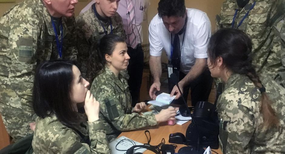 A two-week advanced train-the-trainer course for ten Ukrainian border control officers took place from 4 to 14 December 2017 in Cherkasy, Ukraine. Organized by the Border Security and Management Unit of the OSCE’s Transnational Threats Department (TNTD/BSMU), the course aimed to develop the officers’ knowledge about fraudulent documents and their teachings skills for delivering such training courses themselves in the future.