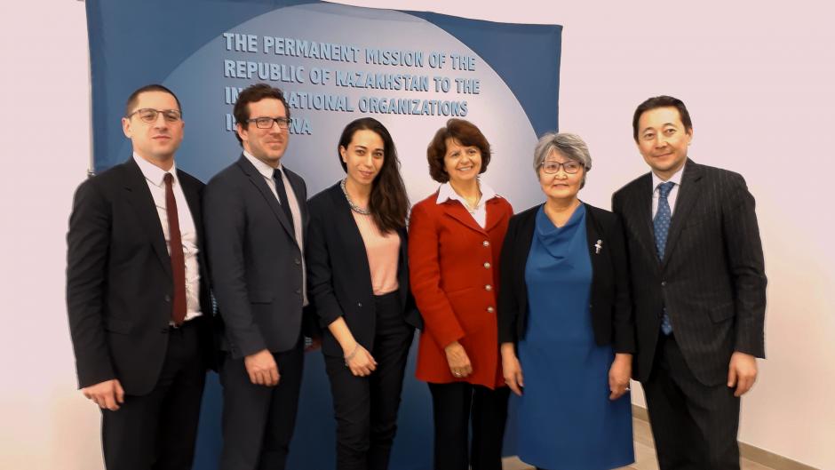 Participants of an informal discussion on women's economic empowerment hosted by H.E. Ambassador Kairat Sarybay (r), Permanent Mission of the Republic of Kazakhstan to the International Organizations in Vienna, Vienna, 6 March 2018.
