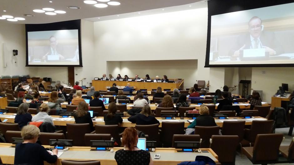 Participants of a side event on advancing research to develop effective ways to tackle gender-based violence during the 62nd session of the UN Commission on the Status of Women, New York, 13 March 2018.