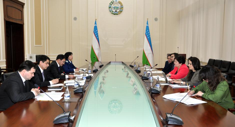With the support of the OSCE Project Co-ordinator in Uzbekistan, the Special Representative held in-depth discussions with high-level officials from both central and local-level institutions, including the Deputy Prime Minister and Chairperson of the Women's Committee, Tanzila Narbayeva, the Deputy Minister of Interior and Chair of the Interagency Anti-Trafficking Commission , Davron Nazarmukhamedov. Jarbussynova also had meetings with representatives of key state agencies such as the Ministry of Employment and Labour Relations, the Supreme Court, the Senate of the Oliy Majlis, and the Office of the General Prosecutor of Uzbekistan. In addition, she was briefed by a group of anti-trafficking NGOs and international partners based in Tashkent.