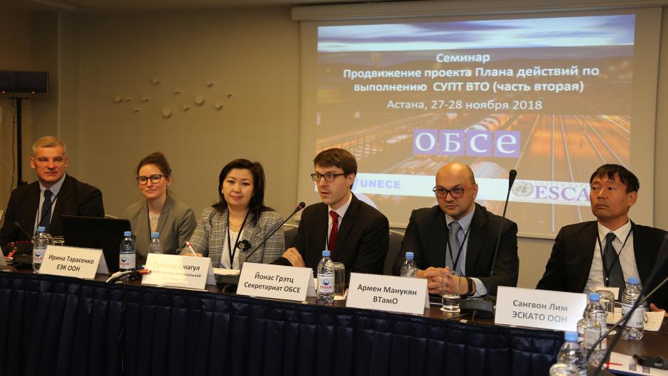 OCEEA Economic Adviser Jonas Grätz speaks at a two-day national workshop held by the OSCE for representatives of the public authorities of Kazakhstan and the country’s business associations, Astana, 27 November 2018.