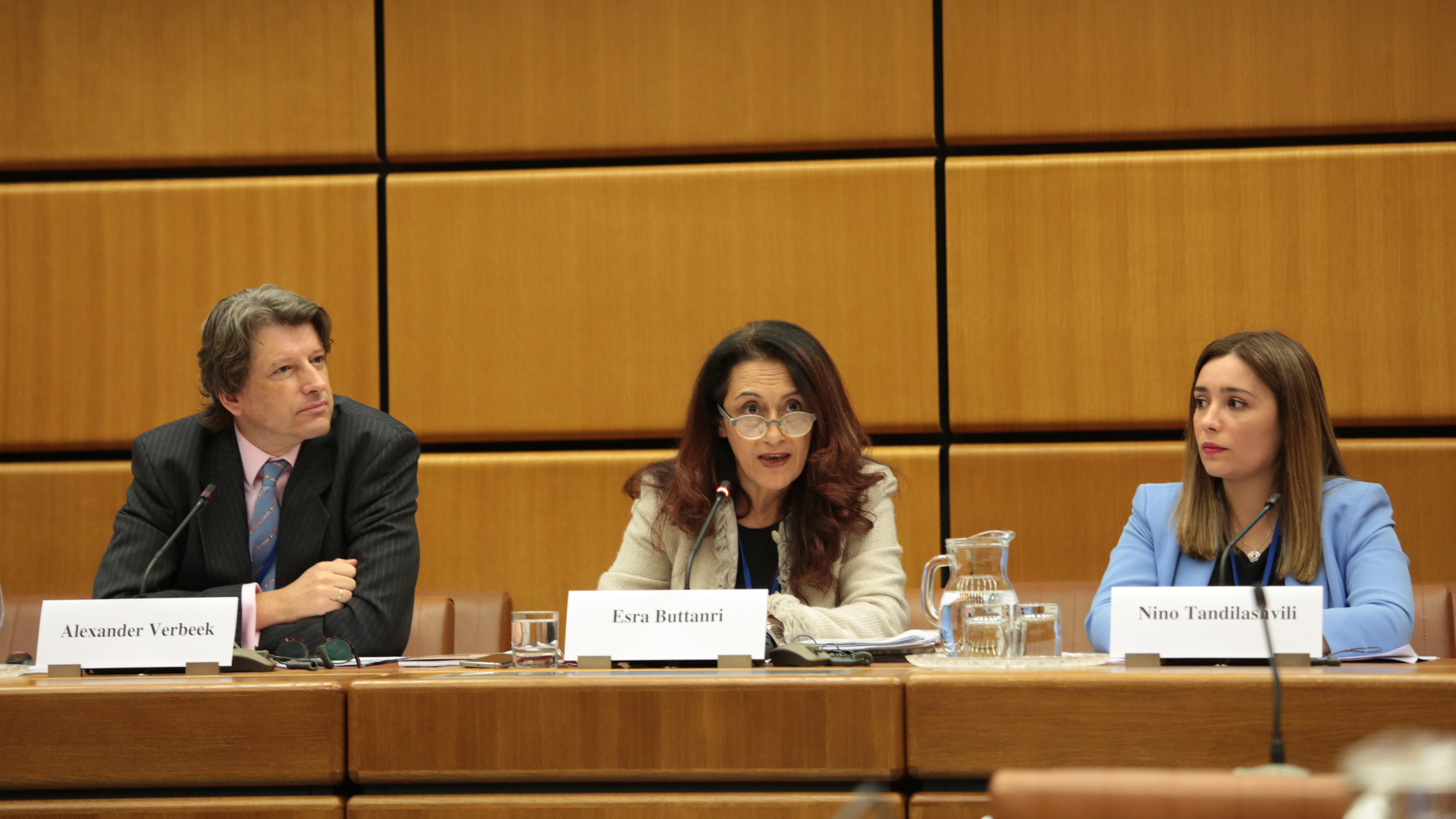L-r: Alexander Verbeek, Founder of the Institute for Planetary Security, Esra Buttanri, Office of the Co-ordinator of OSCE Economic and Environmental Activities, Nino Tandilashvili, Deputy Minister of the Ministry of Environment and Agriculture of Georgia, during the Security Day on “The OSCE and the Sustainable Development Goals”, Vienna, 4 June 2019.