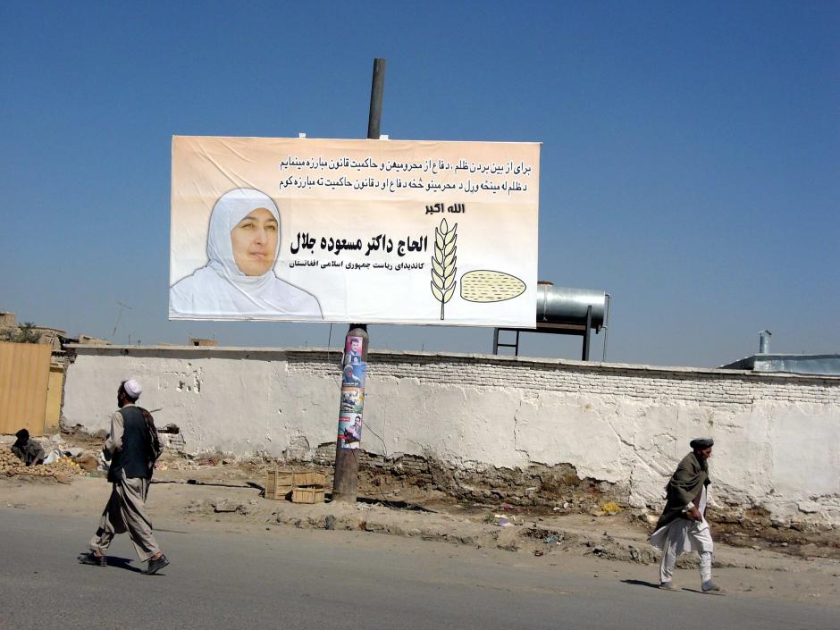 Massouda Jalal, featured on this billboard, was the only female candidate for the 9 October 2004 presidential election in Afghanistan.