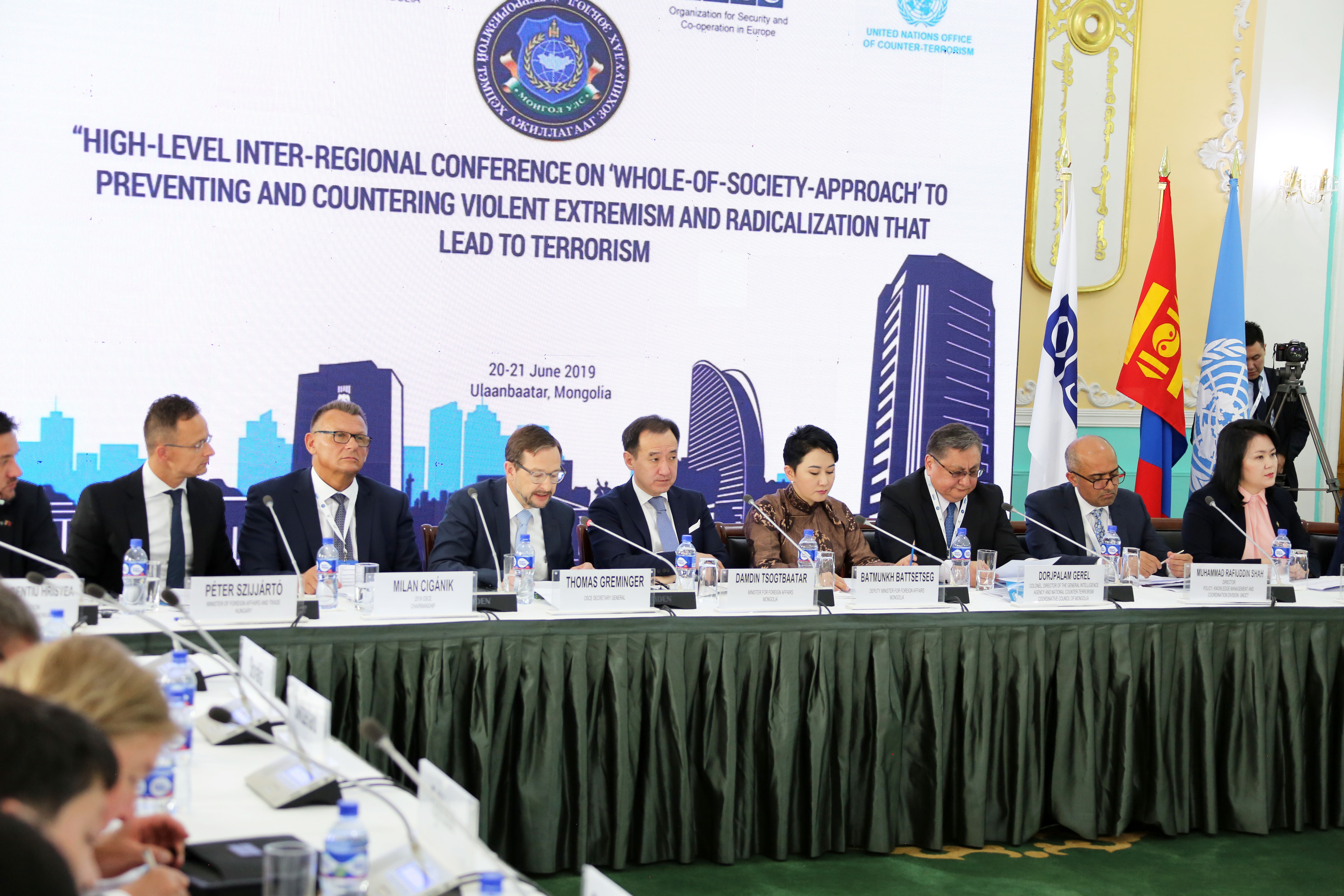 Participants of the high-level inter-regional conference on the ‘whole-of-society approach’ to preventing and countering violent extremism and radicalization that lead to terrorism, 20 June 2019, Ulaanbaatar.