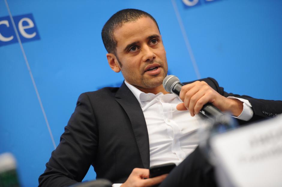 Jacob Mchangama, the founder and executive director of Justitia and a visiting fellow at the Foundation for Individual Rights in Education in Washington, speaking during the OSCE Security Days event, Vienna, 8 November 2019.