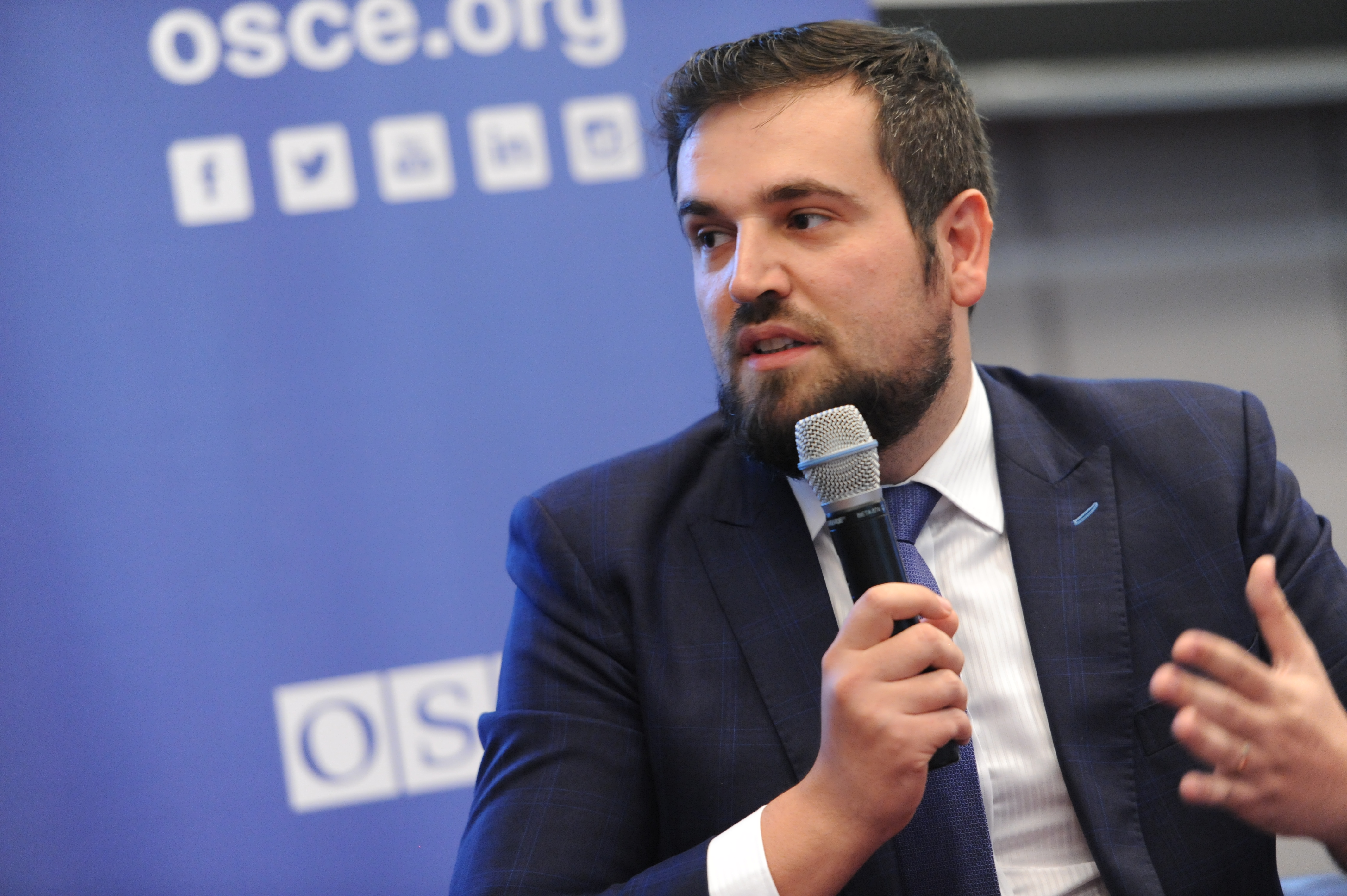 David Mark, Human Rights Adviser and Capacity Building Coordinator at the OSCE Office for Democratic Institutions and Human Rights, moderating the Session 3 at the OSCE Security Days event, Vienna, 8 November 2019.