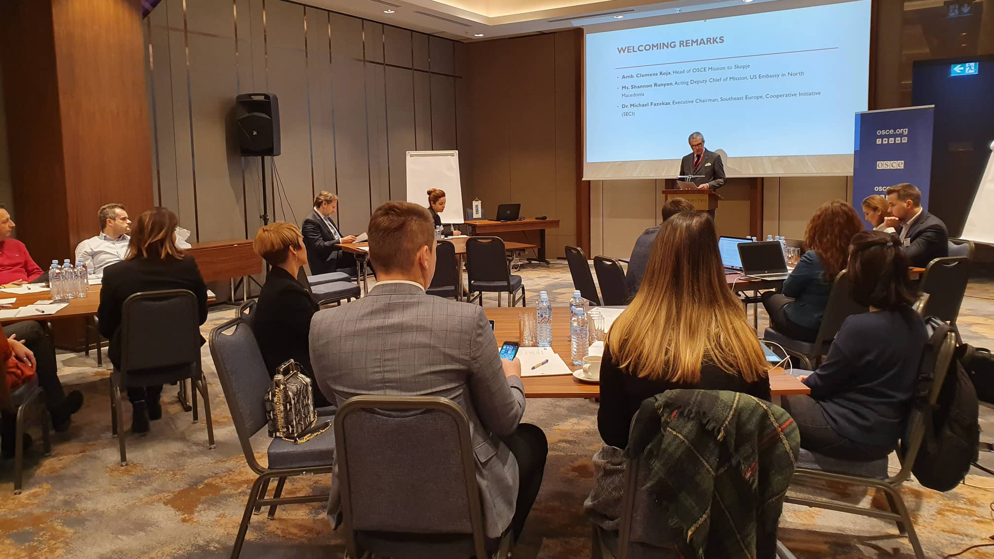 Ambassador Clemens Koja, Head of OSCE Mission to Skopje, addressing participants at the regional workshop
