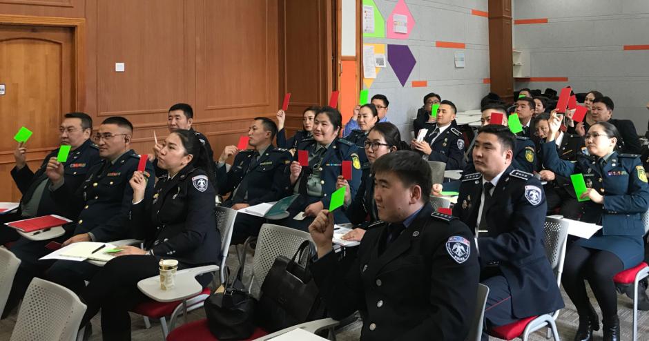 Participants during a practical exercise on the identification of impostors. University of Internal Affairs, Ulaanbaatar, 20 December 2019.
