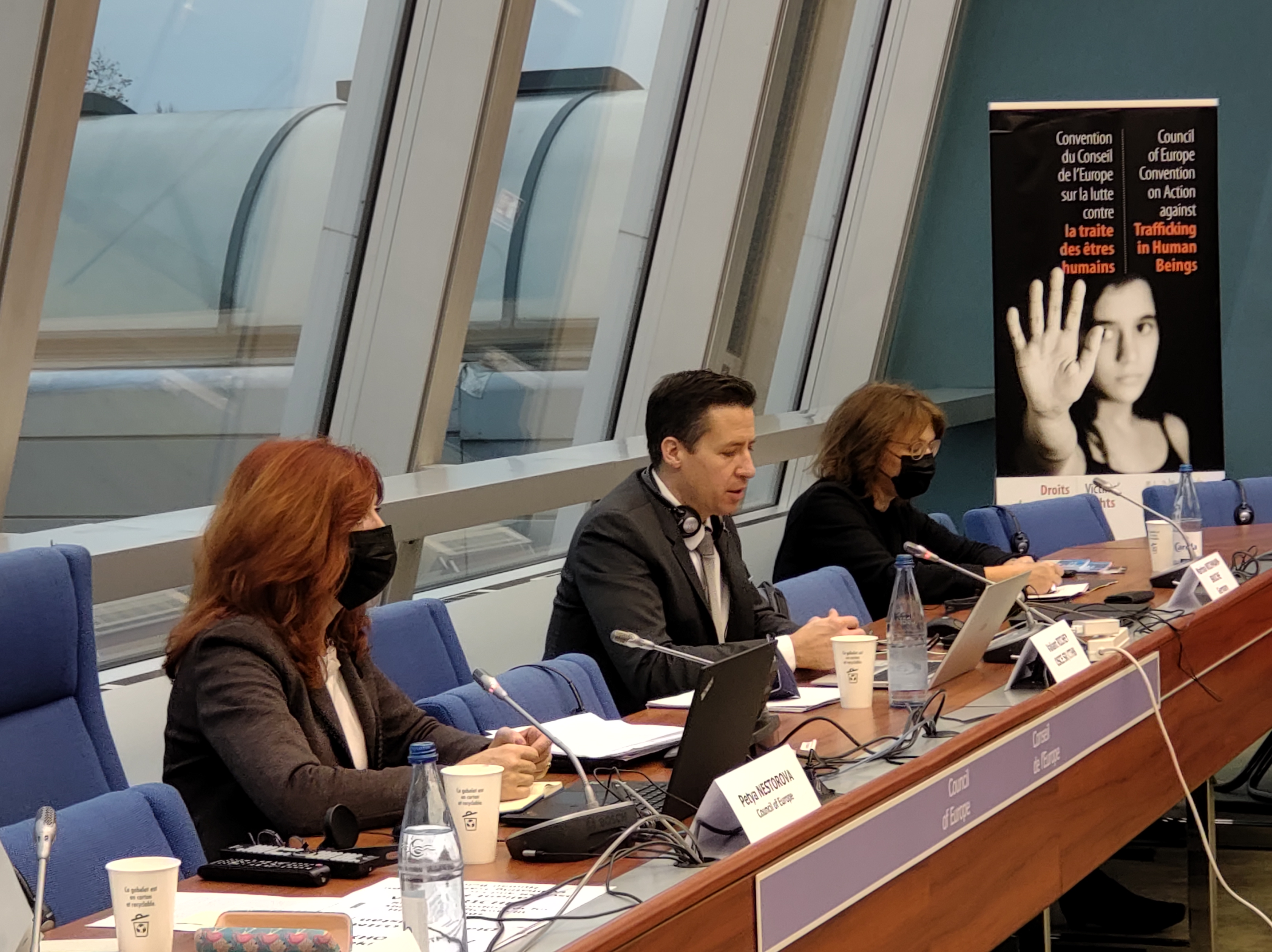Valiant Richey, OSCE Special Representative and Co-ordinator for Combating Trafficking in Human Beings (centre), addressing the annual gathering of National Anti-trafficking Co-ordinators and Rapporteurs in Strasbourg, 16 November 2021