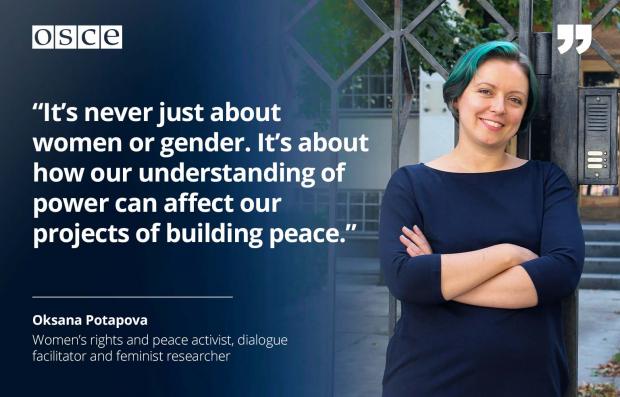 Oksana Potapova is a Ukrainian women’s rights and peace activist, dialogue facilitator and feminist researcher. In 2014 she co-founded the NGO «Theatre for Dialogue» where she has been working with communities affected by conflict, internally displaced and other marginalized groups of women to build dialogue and cohesion within communities and to advocate the rights of vulnerable groups of women at the national and international level.