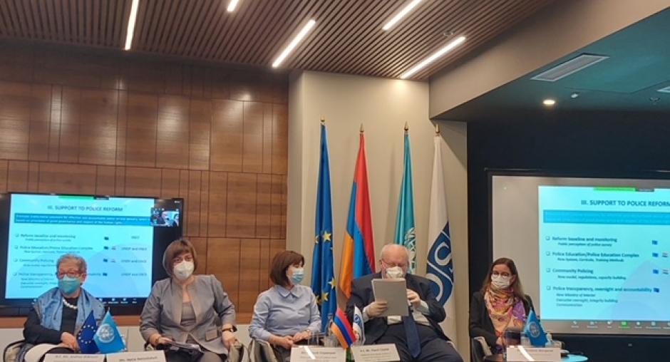 The project objectives are achieved through implementation of three components, based on the most imminent national reform priorities in the following fields: The police reform component is implemented by UNDP and OSCE, in close co-operation with the Ministry of Justice and the Republic of Armenia Police, and supports implementation of the ongoing police reforms, with a special emphasis on the reform of the educational system and establishment of a new Ministry of Interior. Focus areas of OSCE support will be strengthening the police education system, developing a community policing framework and ensuring transparency, accountability, and effectiveness in relation to the establishment of the new Ministry of Interior.