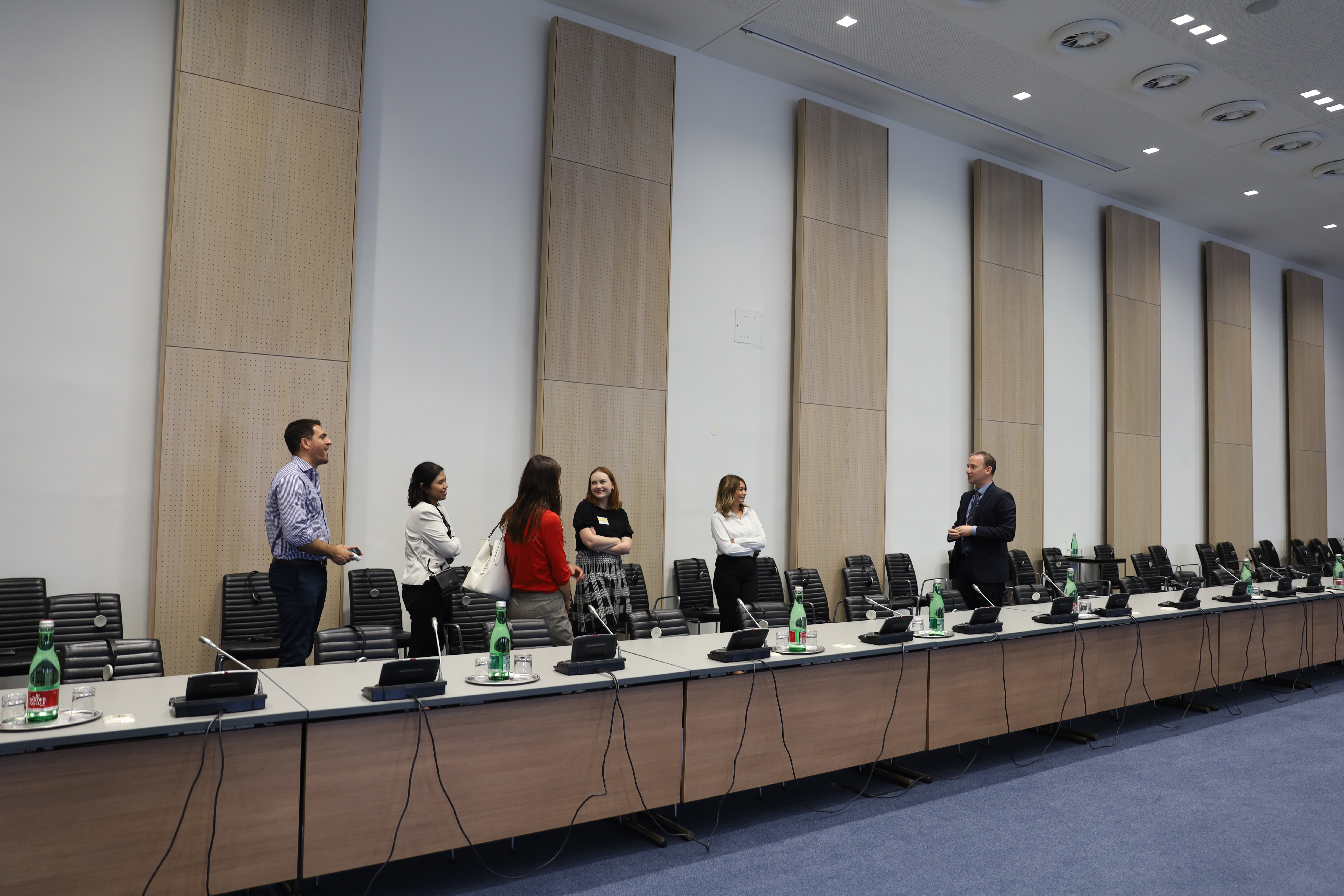 Patrick O'Reilly, Head of OSCE Conference Services, briefs the Study Visit Programme participants on the procedural work of the OSCE, Vienna, 21 September 2022.