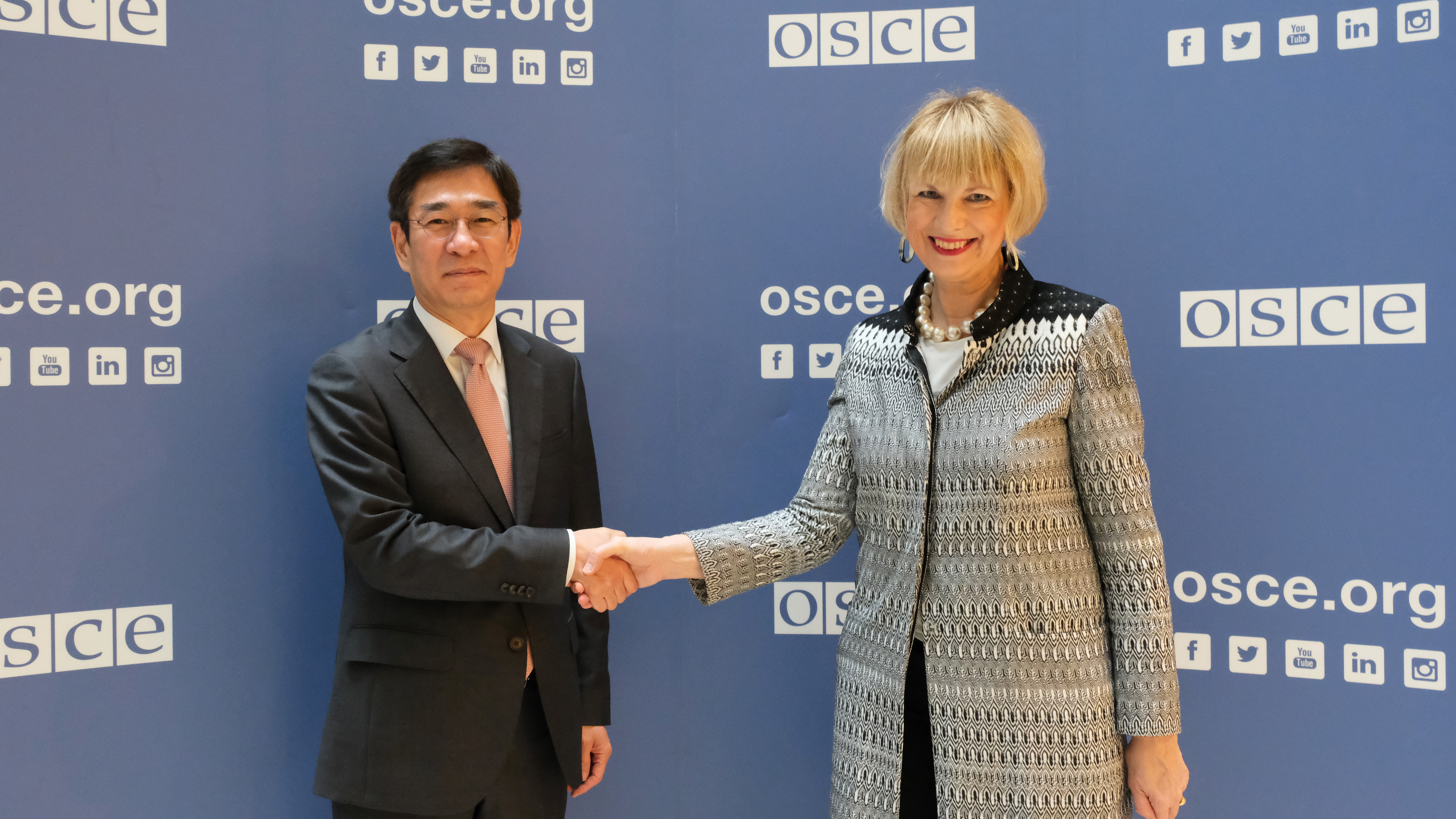 H.E. HAM Sangwook, Ambassador E. & P. and Permanent Representative of the Republic of Korea to the OSCE, with the OSCE Secretary General Helga Maria Schmid, Vienna, 31 October 2022.