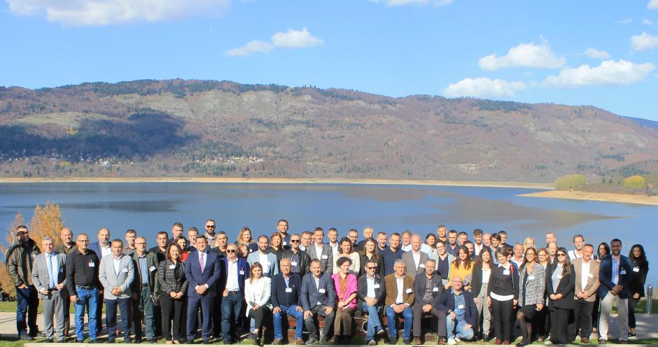 Workshop participants by Mavrovo Lake, North Macedonia, 2 November 2022.