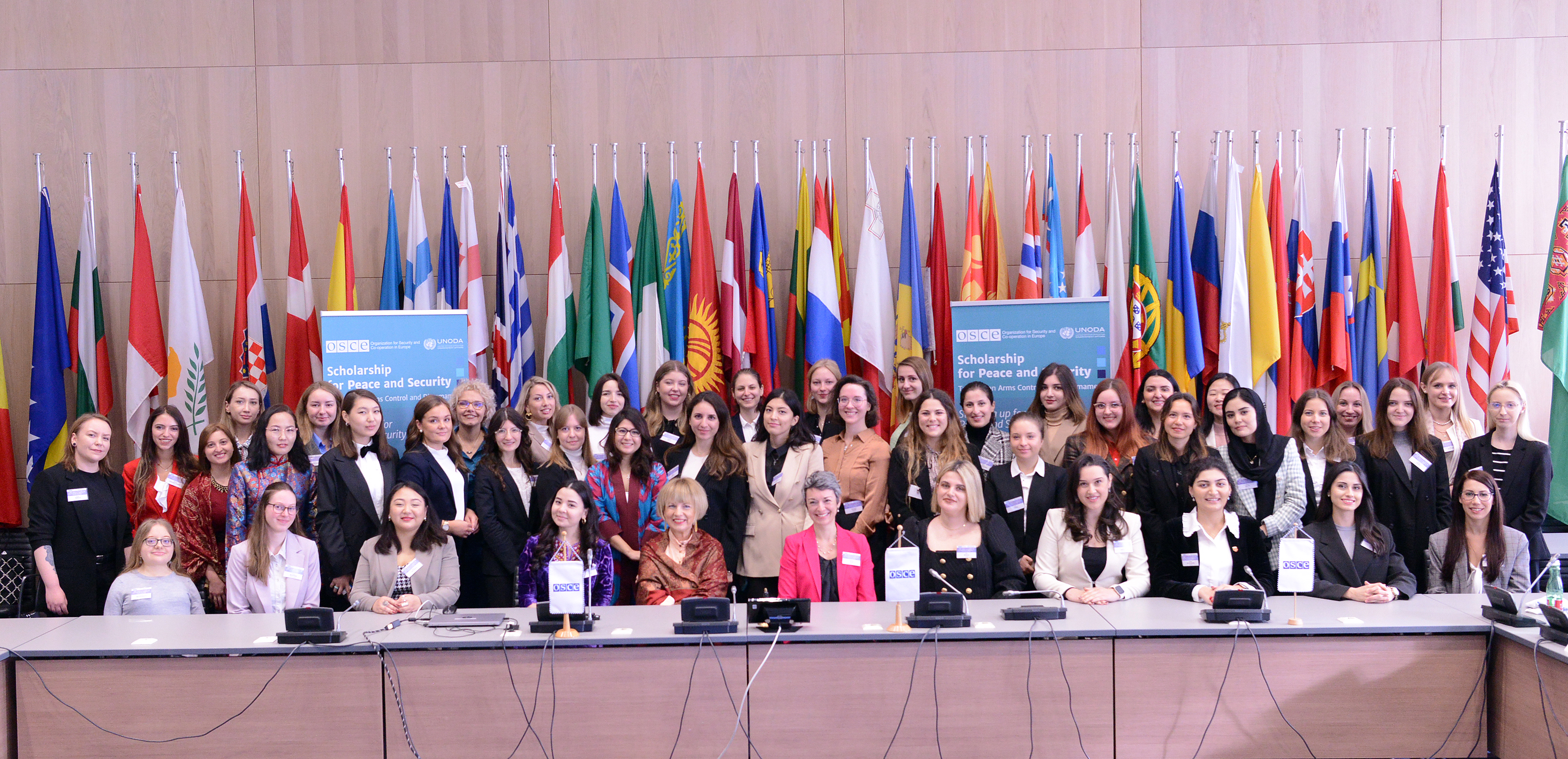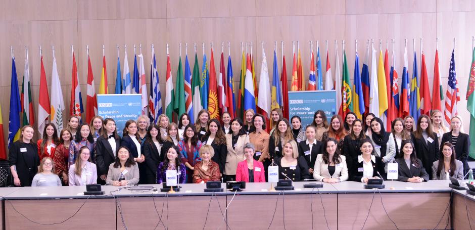 OSCE Secretary General Helga Maria Schmid and participants of the 2022 Scholarship for Peace and Security training programme on arms control, disarmament and non-proliferation; at the Opening Session on 7 November 2022.