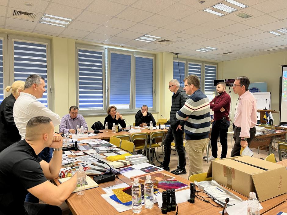 Participants of train-the-trainers course on identifying forged documents and impostors at border crossing points in Mostar, Bosnia and Herzegovina, 16 December 2022.
