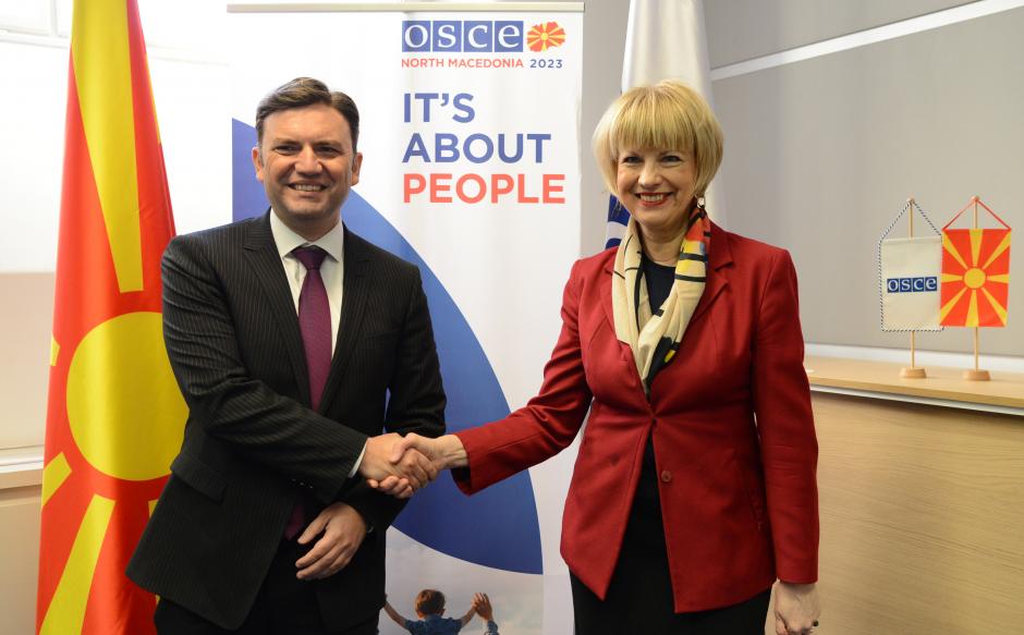 OSCE Secretary General Helga Maria Schmid and 2023 OSCE Chairman-in-Office, Minister of Foreign Affairs of North Macedonia, Bujar Osmani, Vienna, 12 January 2023.