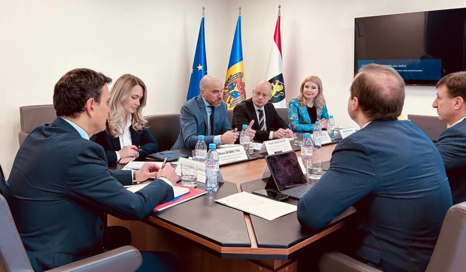 Representatives of the General Police Inspectorate of the Republic of Moldova with OSCE team members, Chisinau, 13 March 2023.